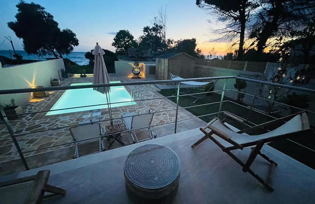 Willa Tsanta House Agios Gordios dysponuje tarasem z widokiem na morze oraz zewnętrznym basenem.